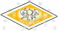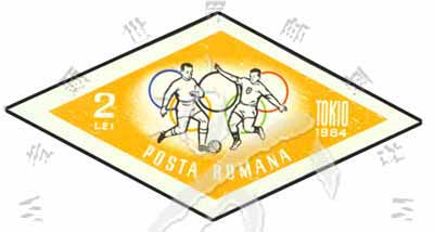 Sc#1665I 东京第18届奥运会,足球无齿菱形票2I 1枚