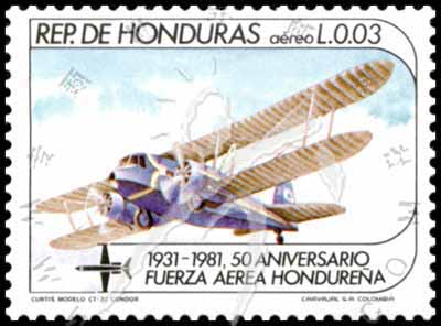 Sc#C708 洪都拉斯空军50周年,CT-32型飞机航空票3c 1枚