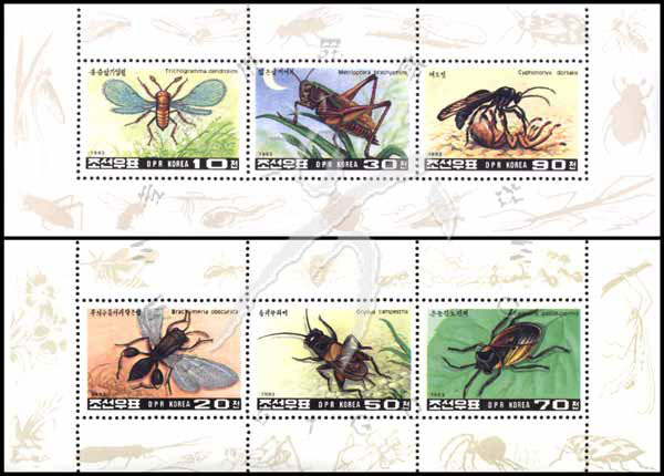 昆虫,松毛虫赤眼蜂、广大腿小蜂、蟋蟀及大眼长蝽等2枚小全张(各3票)