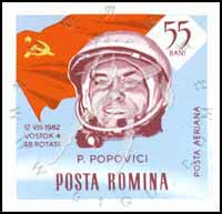 Sc#C156I 苏宇航员帕维尔.波波维奇及国旗无齿航空票55b (10-6) 1枚
