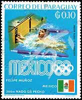 Sc#1135 墨西哥奥运金牌得主:200米蛙泳穆诺兹0.10g (9-1) 1枚