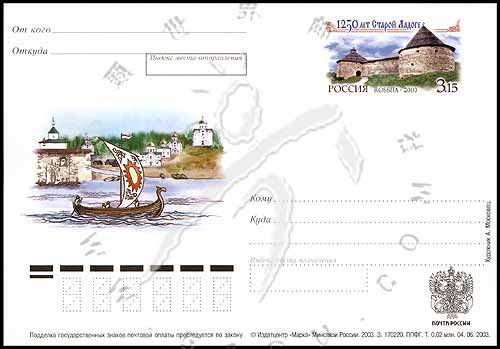 拉多加湖堡垒建成1250周年,古拉多加河风光及堡垒外景邮资片1全