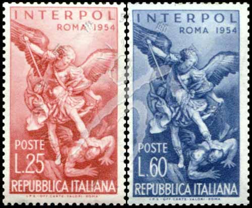 Sc#658-59 罗马第23届国际刑警组织大会,圣迈克尔降魔(2全) 1枚