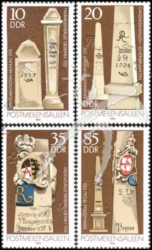 邮路里程碑,穆劳四分之一和欧义德兰二分之一公里里程碑、约翰乔治城和申布龙城界碑、弗赖贝格及派高里程碑4全