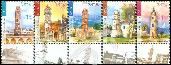 钟塔,海法钟塔、希伯来钟塔及耶路撒冷钟塔等带边纸5全(我社已售缺)