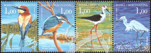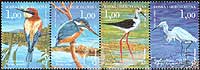 鸟类,小白鹭、黑翅长脚鸟、翠鸟及黄喉蜂虎4联