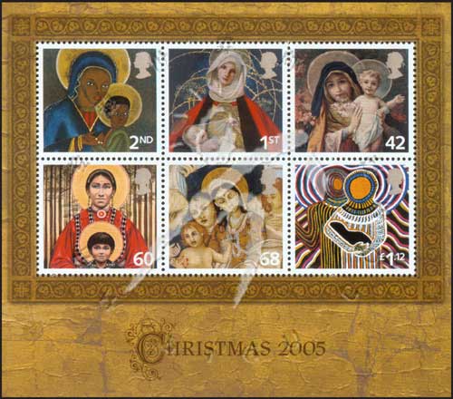 圣诞节,欧洲、海地、意大利、印度、美洲土著及原始艺术中的基督教圣母子绘画小全张(6票)