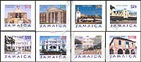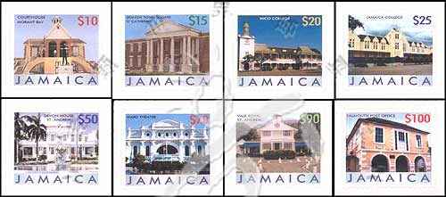 建筑,莫兰特湾法院、法尔茅斯邮局、圣安琪皇家谷、剧院、达芳大宅、牙买加大学及西班牙镇广场等不干胶自贴票8全
