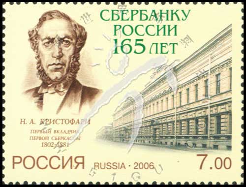 俄罗斯联邦储蓄银行开通165周年,创建人肖像及银行外景1全