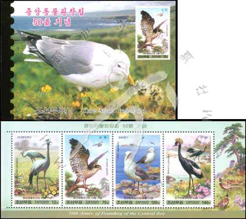 朝鲜中央动物园建成50周年,蓝鹤、苍鹰、银鸥及黑冠鹤小本票(4票)