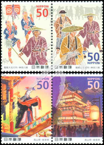 故乡邮票—各地节日三,高山祭及箱根大名行列4全