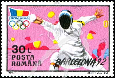 Sc#3754 巴塞罗纳第25届奥运会,击剑30I (8-6) 1枚