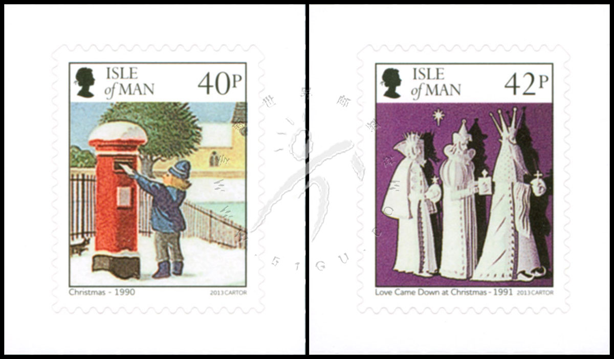 圣诞节,马恩岛于1990年及1991年发行的圣诞节邮票不干胶自贴再版票2全