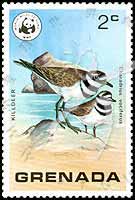Sc#851 鸟类:双领鴴与WWF野生动物基金会徽志2c (6-3) 1枚