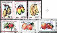 Sc#1064,1066-70 水果:荔枝、苹果、桃、香蕉、鳄梨及芒果1枚