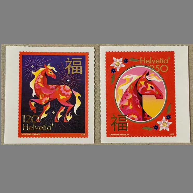 瑞士2026年生肖马邮票2全这是瑞士邮政首次发行中国生肖邮票