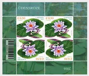 拉脱维亚2016年花卉系列睡莲小版张含4票