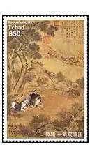 乍得2022年非洲6国联合发行中国书画名家乾隆《—箭双鹿图》邮票1全