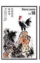 塞拉利昂2022年非洲6国联合发行中国书画名家徐悲鸿《风雨鸡鸣》邮票1全
