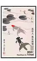 乍得2022年非洲6国联合发行中国书画名家吴作人《魚乐图轴》邮票1全