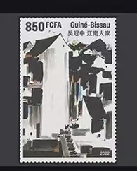 几内亚比绍2022年非洲6国联合发行中国书画名家吴冠中《江南人家》邮票1全