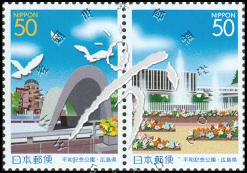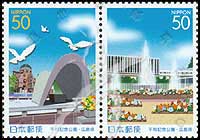 广岛和平纪念公园,鸽子、喷泉池、和平纪念碑及和平纪念资料馆2联(我社已售缺)