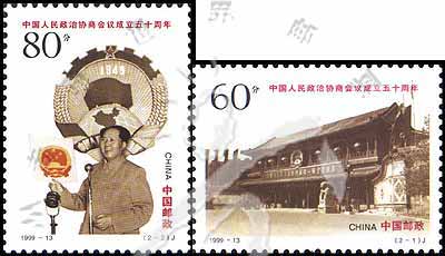 (99-13)政协会议50周年1枚(面值为0.6, 0.8)