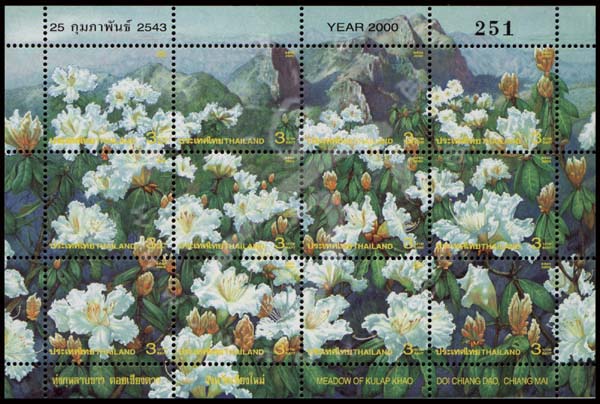 泰国新千年邮票,泰国花卉系列二,清迈省昌佬山的Kulap Khao花小版张(12票)