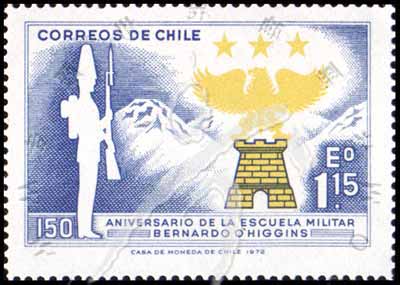 Sc#422 奥希金斯军事学院150年,校徽和1822年持枪士兵1.15e 1全