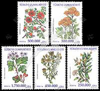 普票,花卉,欧蓍草、香桃木、山楂、贯叶连翘、华西蔷薇5全