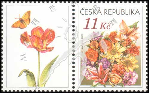 祝贺邮票,花束1全(带1枚附票为花及蝴蝶)