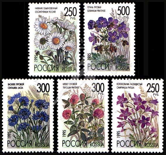 花卉,风铃草、滨菊、红三叶草、矢车菊及草风铃草5全