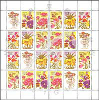 花卉,三色堇、美国石竹、皇冠贝母、香豌豆及金鱼草小版张(4套共20票,带4枚附票)