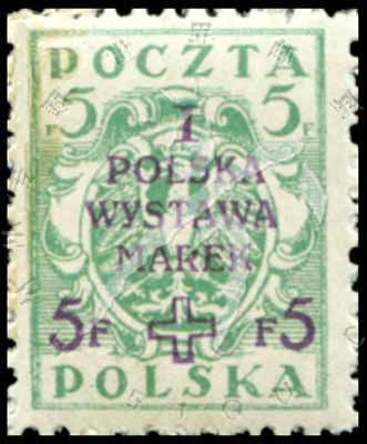 Sc#B1 首届波兰邮展,鹰徽加盖附捐票5f+5f 1枚