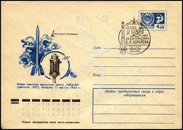 1933年8月17日苏联发射的火箭及火箭发动机邮资封1F