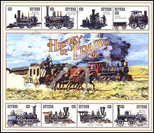 蒸汽机车,1837年史蒂芬式蒸汽小火车及1832年大西洋机车小版张(8票)