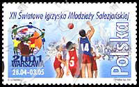华沙第12届世界慈幼会青年锦标赛,徽志、篮球及球迷带异形齿孔1全