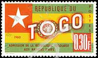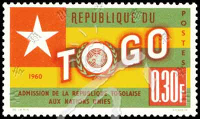 Sc#386 多哥加入联合国,多哥国旗及UN徽志30c (6-1) 1枚