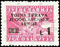 Sc#42 南斯拉夫1945年女游击队员普票加盖改值1l (10-1) 1枚