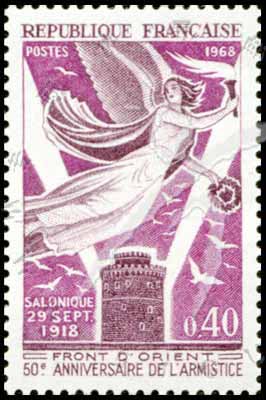 Sc#1221 东线停战50年,希腊萨洛尼卡白塔和胜利女神40c 1全