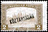 Sc#164 布达佩斯国会大厦加盖“共和国”2k 1枚