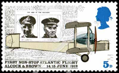 Sc#584 阿尔科克与布朗首次不着陆跨越大西洋50年5p (5-1) 1枚