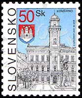 城市系列—科马尔诺(斯西南部城市,濒临多瑙河,其防御工事体系为斯国家文物),城徽及建筑雕刻版1全