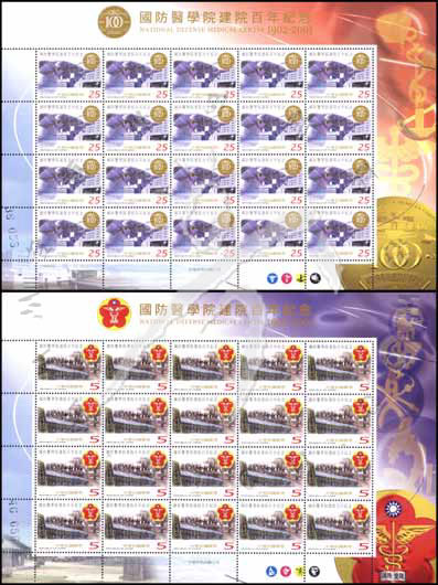 国防医学院建院百年纪念,徽志、新旧校舍建筑小版张2枚(含20票)