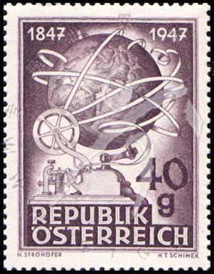 Sc#495 奥地利电报百年,莫尔斯发报机和地球40g 1枚