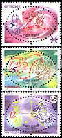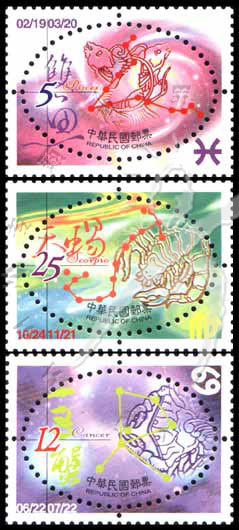 星座系列四,水象星座,双鱼座、、天蝎座、巨蟹座(椭圆形邮票)3全