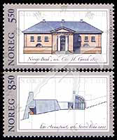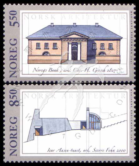 挪威经典建筑结构图(挪威国家银行,Ivar Aasen<诗人>纪念中心)、建筑师Christian H. Grosch (1801-65)的名字等2全