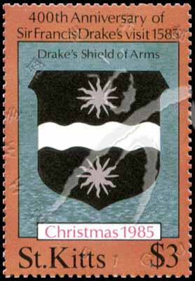Sc#176 圣诞及英探险家德雷克抵圣基茨400年,盾徽$3 (4-4) 1枚