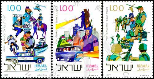Sc#642-44 以色列警察及警车、骑警、消防员等3全