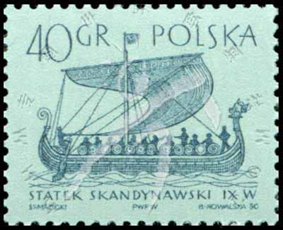 Sc#1128 古帆船,9世纪北欧维京人海盗船"Gokstad"号40g (8-5) 1枚